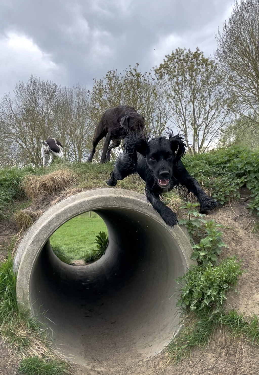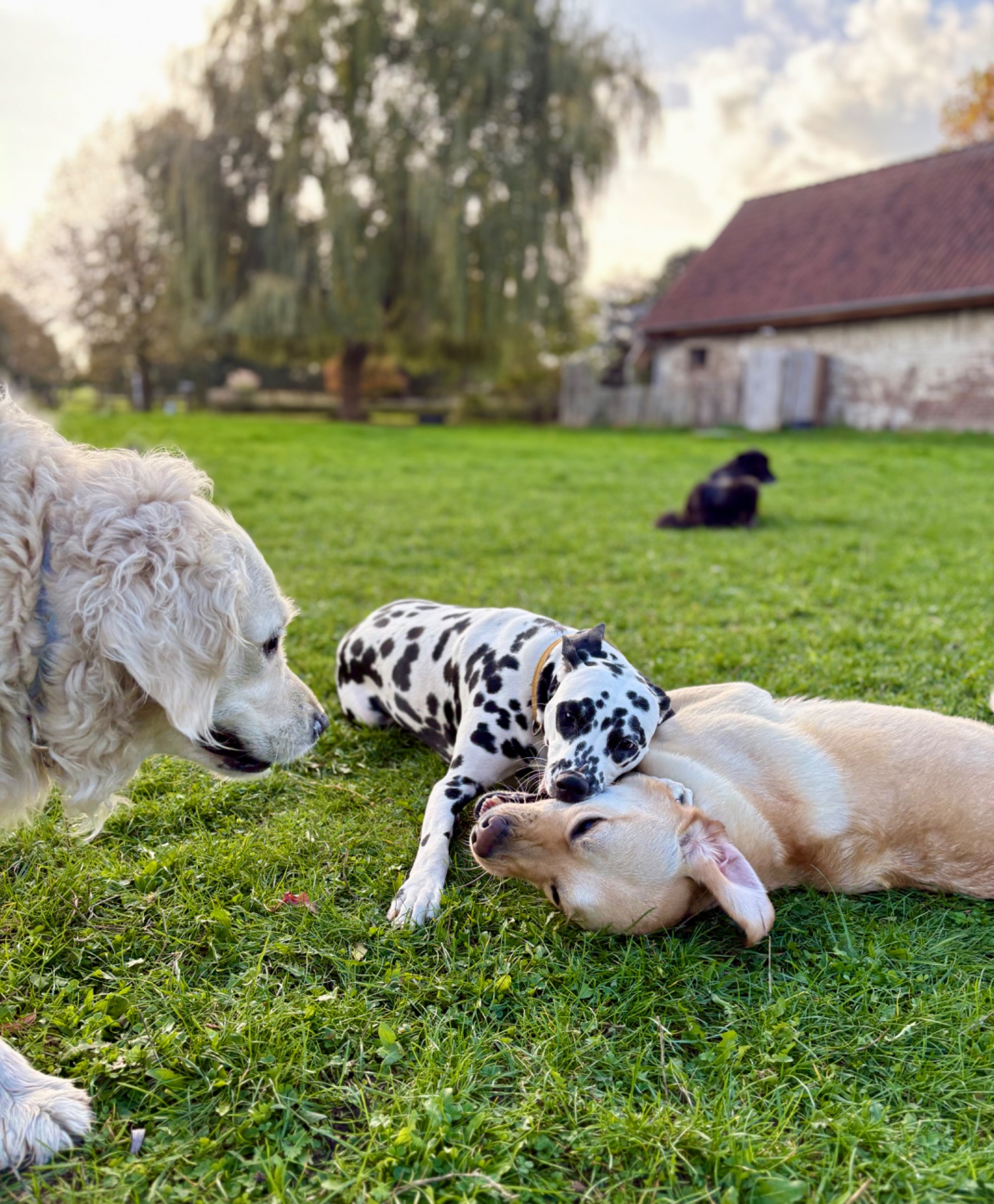 Hier kan jouw hond samen met wat vriendjes naar harte lust ravotten, rennen, snuffelen, waterplezier beleven of gewoon genieten & rusten midden in de natuur.